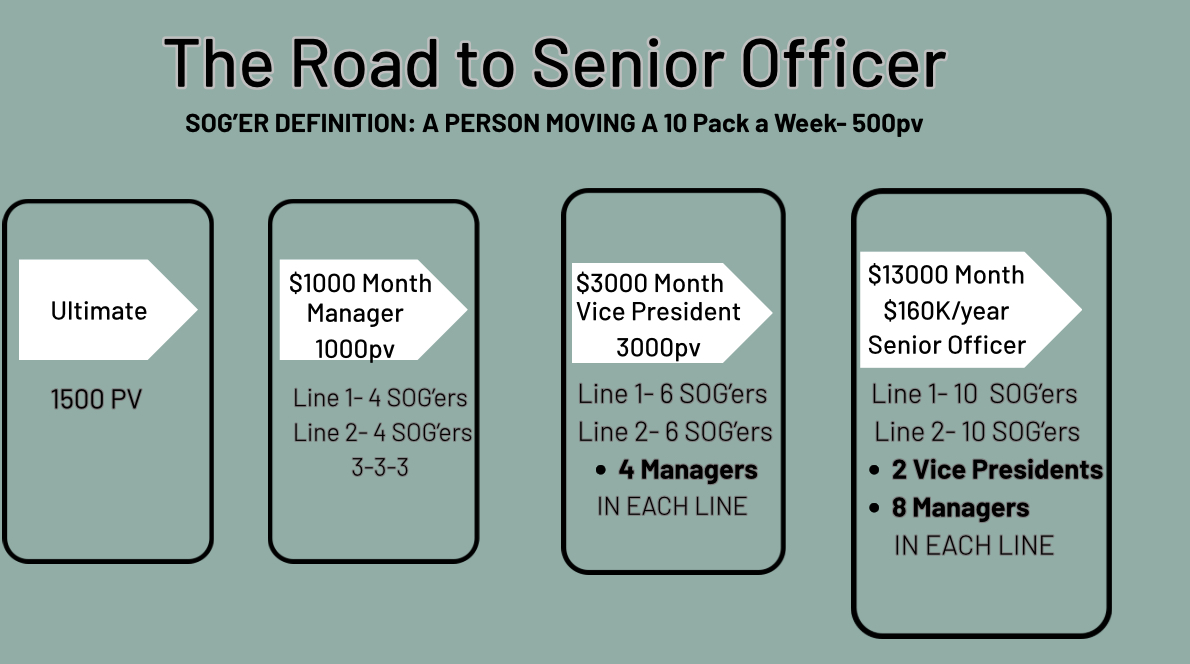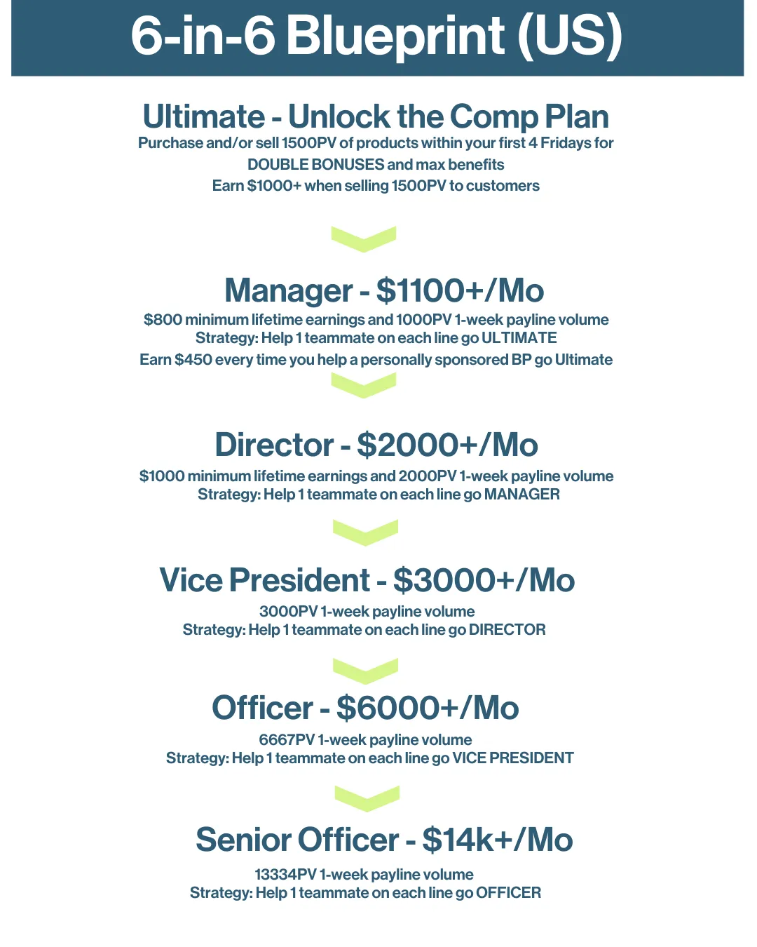 Title advanced to Manager ($800 lifetime earnings and 1-week pay-line volume of 1000 PV) .