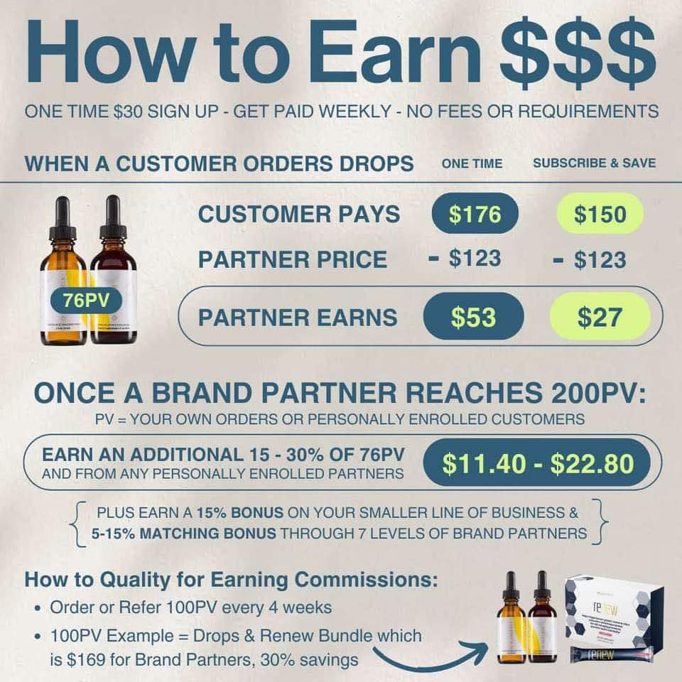 When you sell the product to a customer, you earn the difference of what they pay vs what you get it for. In an example of selling the drops, if the customer buys for full retail at $176, if you’re on subscription your price is $123